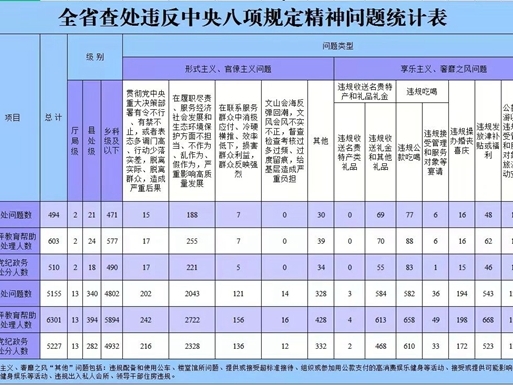 今年10月全省查处违反中央八项规定精神问题494起