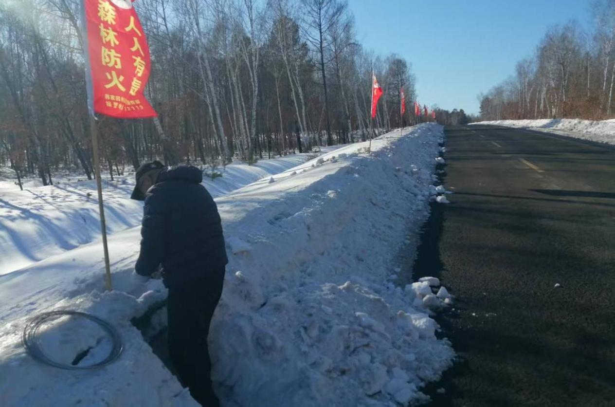 松岭林业局全力清雪打通森林防火道路