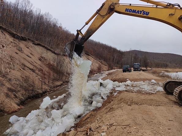 加格达奇林业局实施取水池破冰作业保证吊桶取水